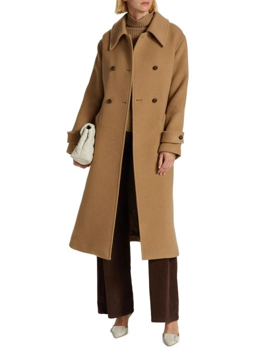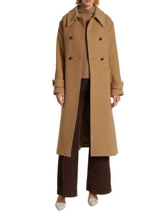 Crafted of ultra-soft camel hair, Nili Lotan’s Amin coat is designed in a sophisticated tailored silhouette, fastened by a double-breasted button closure and removable waist tie.