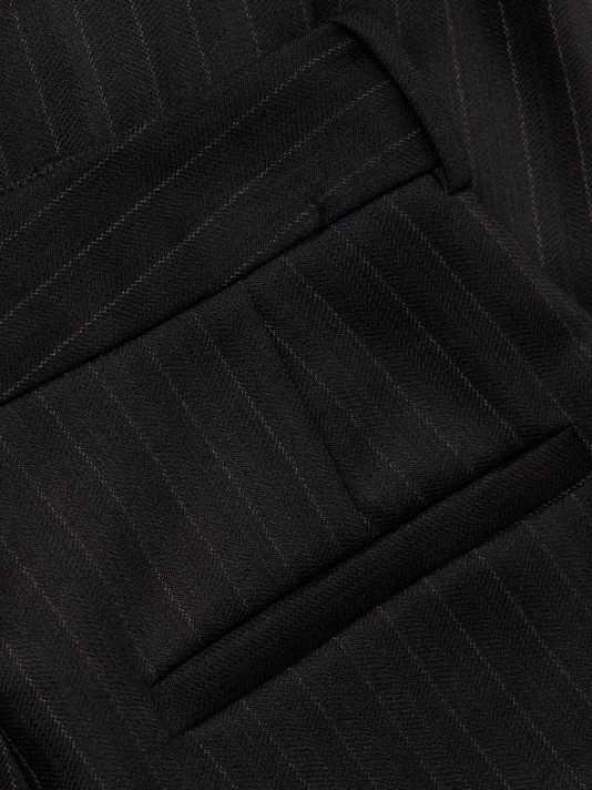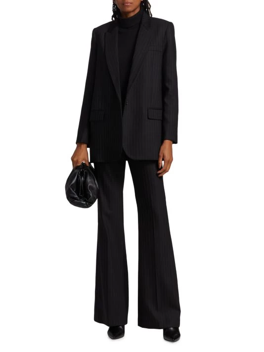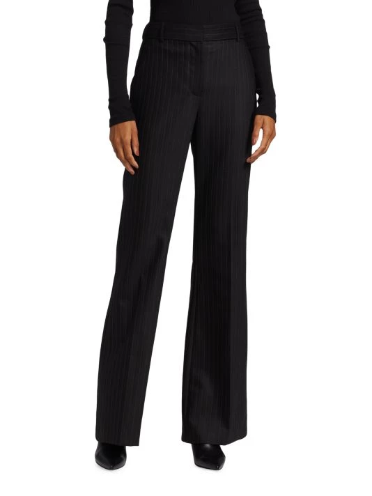 Crafted of a stretch-wool blend with pinstripes, the Arielle pants by Nili Lotan are designed in a high-waisted, flared leg silhouette.