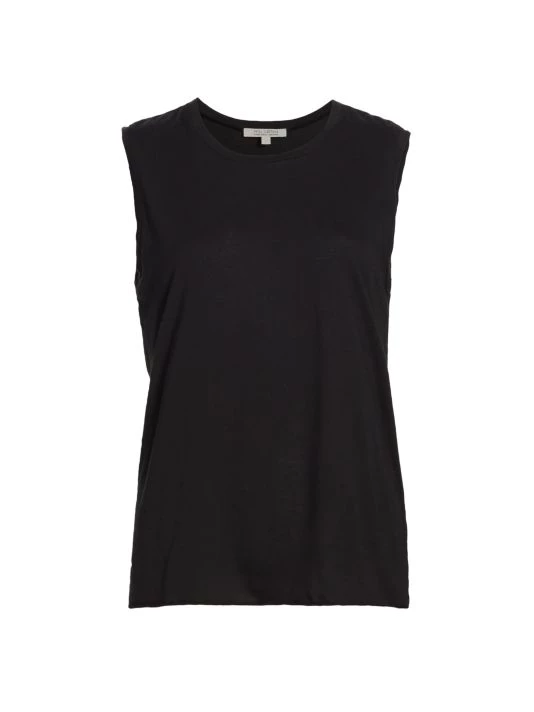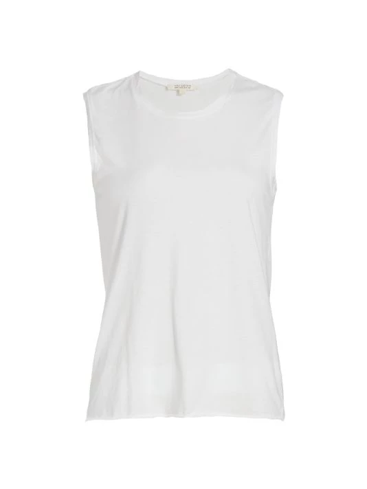 Relaxed fit cotton muscle tank with a raw hem for a worn-in look.