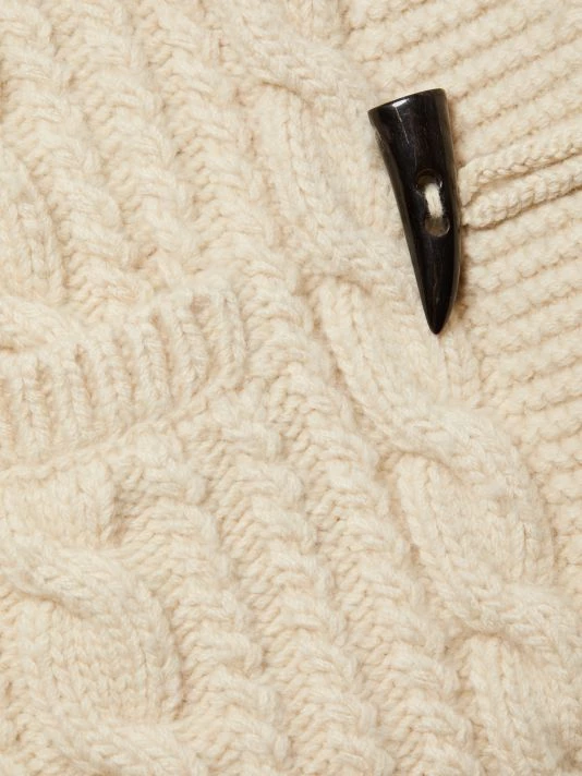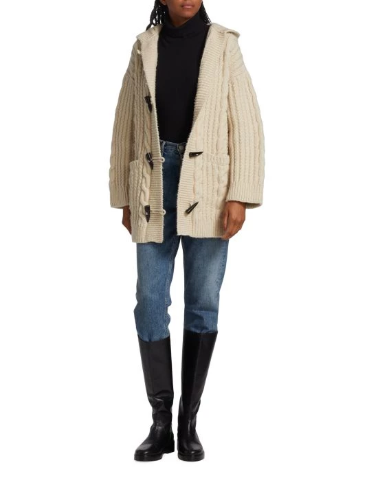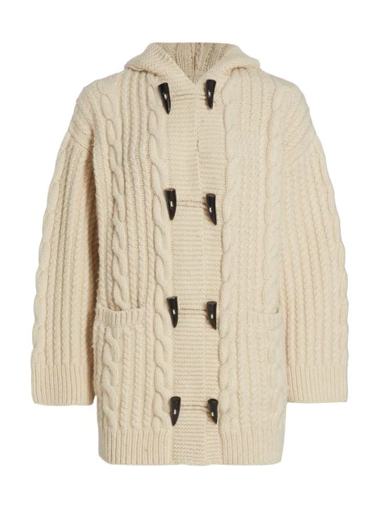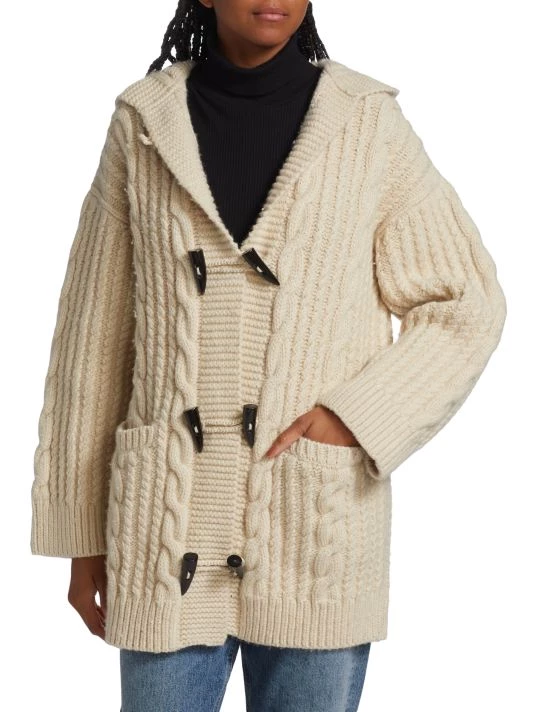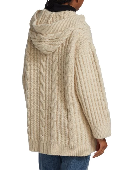 Nili Lotan’s hooded Hansel cardigan boasts a contrast faux horn button front and textured cable knitting.
