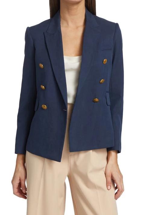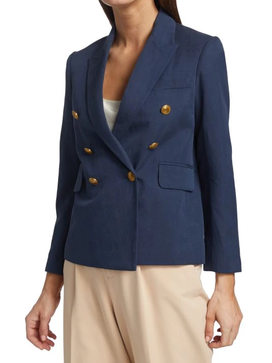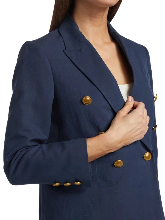 Nili Lotan’s Henry blazer is made of a cotton and linen blend. Featuring a double-breasted silhouette, this softly tailored style is detailed with a collared neckline and flap front pockets.