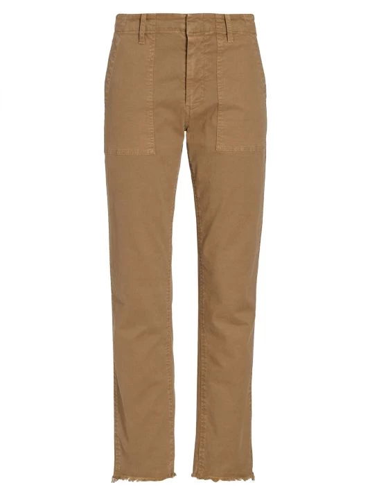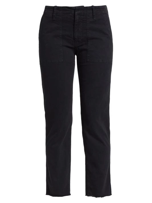 Cotton pants with defining front pockets and a raw hem for a worn-in look.