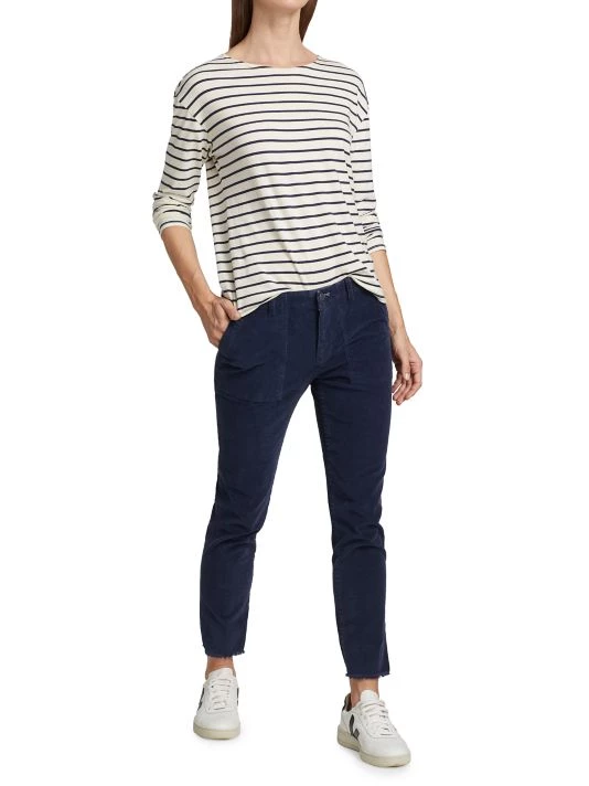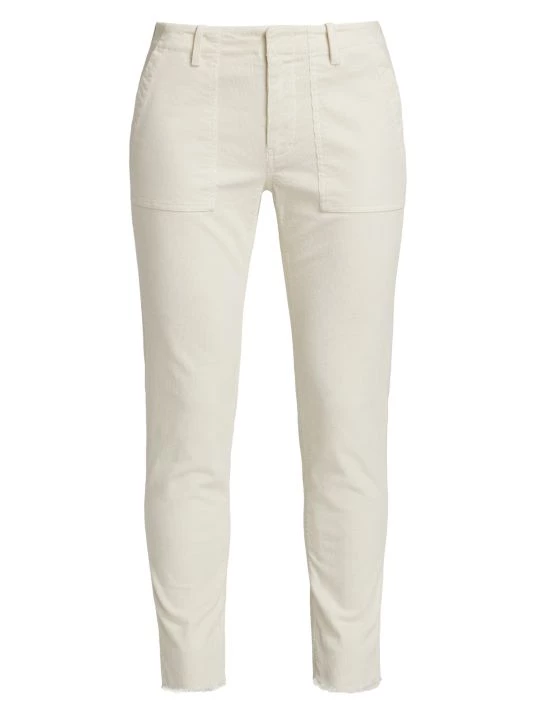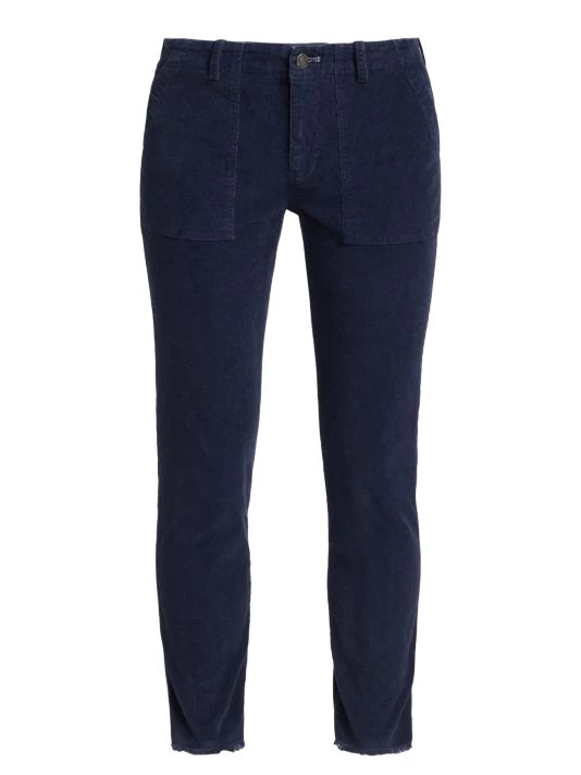 Cotton pants with defining front pockets and a raw hem for a worn-in look.