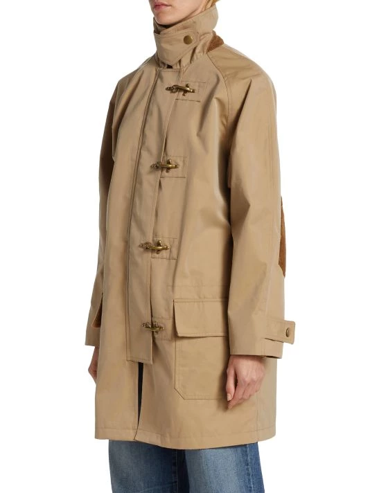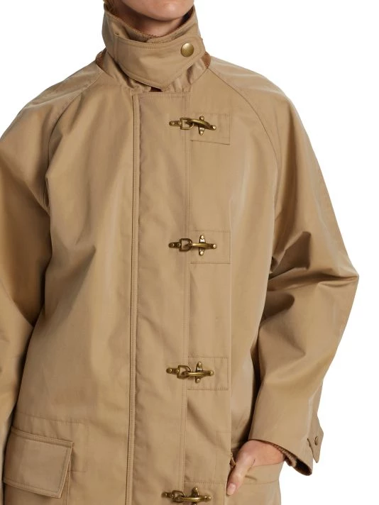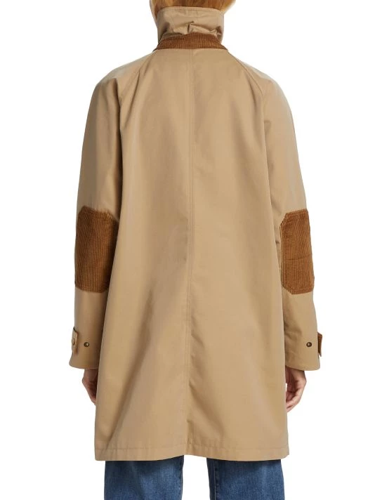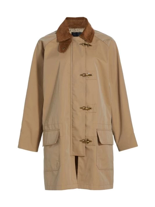 Nili Lotan’s long canvas Jessy jacket is elevated by contrast corduroy detailing and luxe goldtone clasp closures.