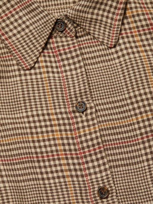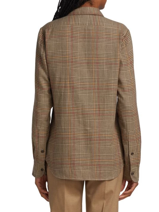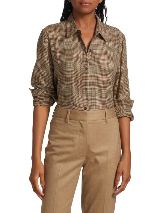 Nili Lotan’s Libby shirt boasts a classic plaid pattern and complementary button front.