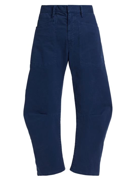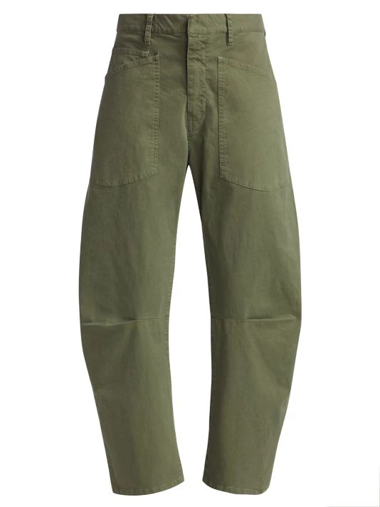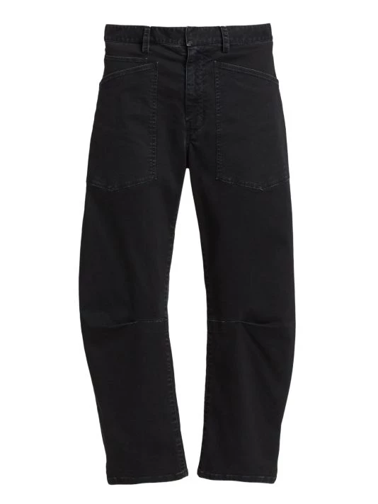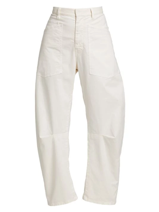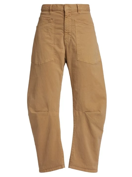 Wide-leg pants with structured seaming and back drop patch pockets.