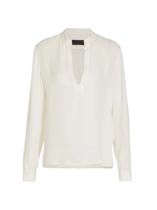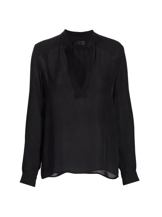 This lustrous V-neck blouse is crafted of luxe silk georgette.
