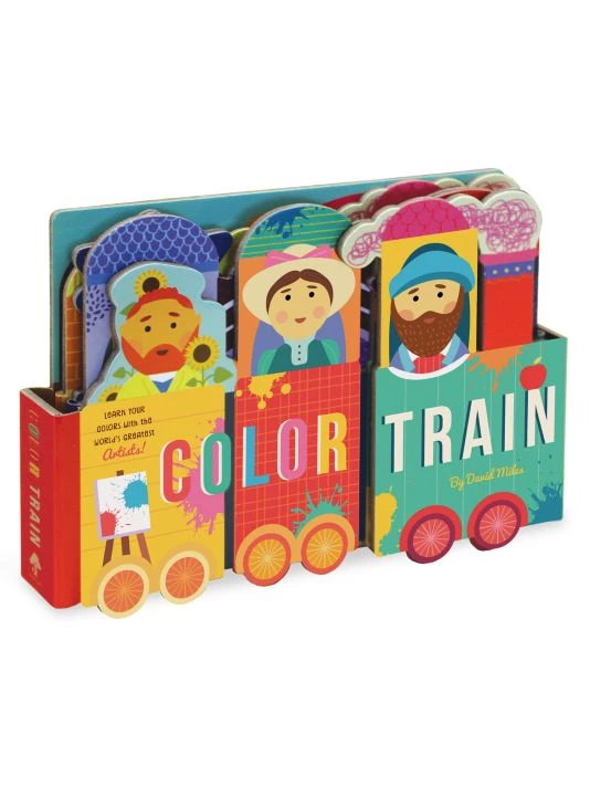 This two-in-one book unfolds into a colorful train featuring famous artists including Mary Cassatt, Leonardo da Vinci, Claude Monet, and more.